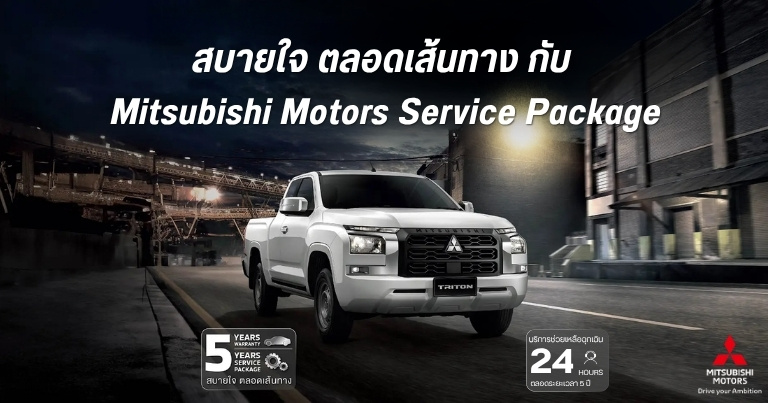สบายใจ ตลอดเส้นทาง กับ Mitsubishi Motors Service Package มอบความคุ้มครองและดูแลรถให้กับลูกค้าตลอด 5 ปี เช่น การตรวจเช็คระยะ เปลี่ยนถ่ายน้ำมันเครื่อง การซ่อมบำรุง การเปลี่ยนอะไหล่แท้
